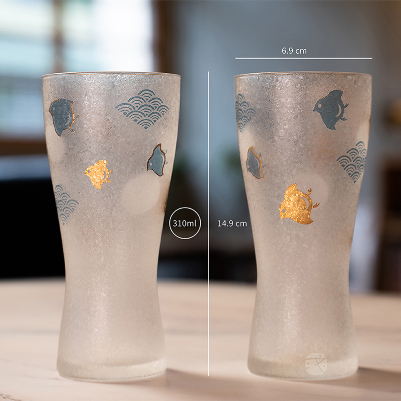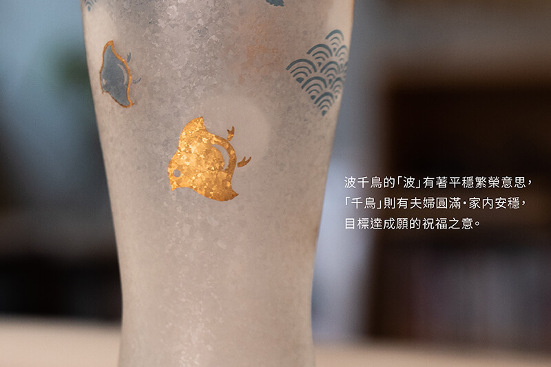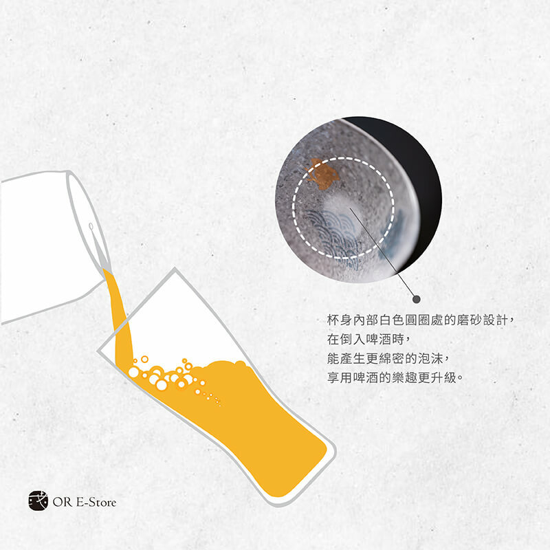 石塚硝子「霧面結晶玻璃長杯組」系列-日式波千鳥的「波」有著平穩繁榮意思,「千鳥」則有夫婦圓滿、家内安穩,目標達成願的祝福之意。獨特的杯身內側「圓圈磨砂區設計」,使倒入啤酒後產生更綿密的泡沫感,暢飲樂趣升級!