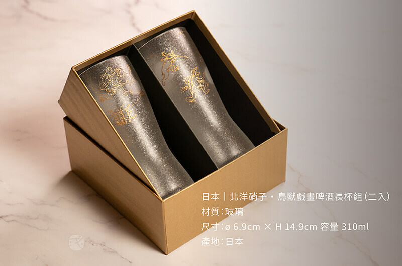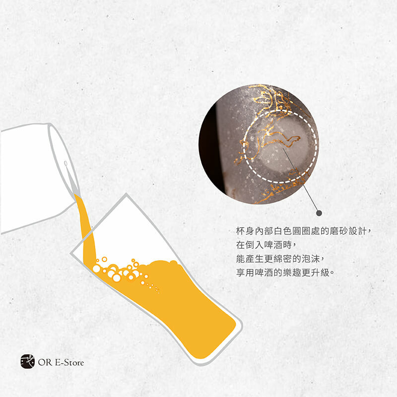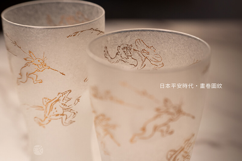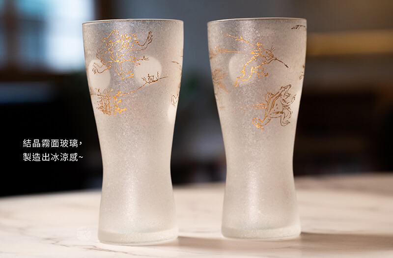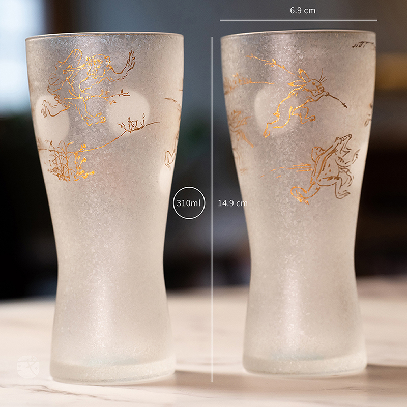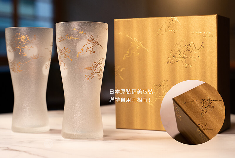 取自日本國寶平安時代畫卷圖紋,最古老漫畫的『鳥獸戲畫』融入杯身之中。獨特的杯身內側「圓圈磨砂區設計」,使倒入啤酒後產生更綿密的泡沫感,暢飲樂趣升級!