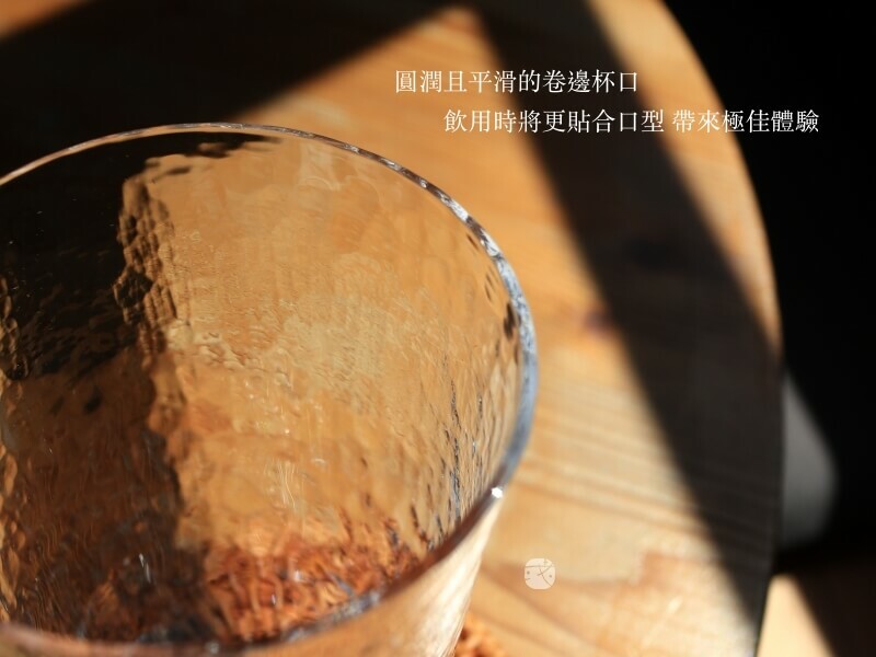 選自『東洋佐佐木』百年大廠,頂級日製工藝, 杯身錘目紋的設計在視覺上如同水波粼粼, 圓潤的卷邊杯口,飲用上更貼合口型!