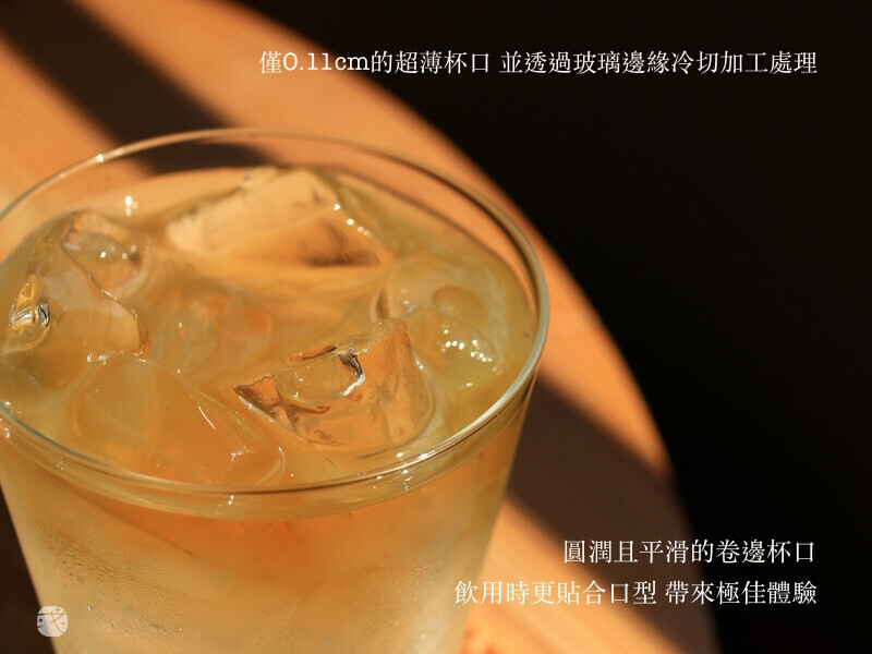 「HS」專利強化玻璃技術,獨家鈉鈣玻璃製成;杯子擁有更高的安全性及耐久度,且杯身輕薄,圓潤的卷邊杯口,飲用上更貼合口型!