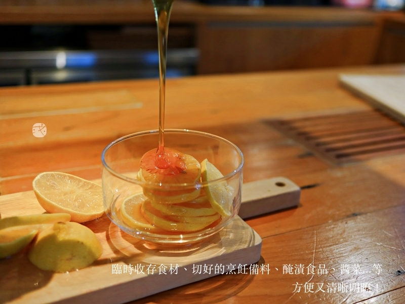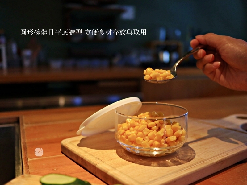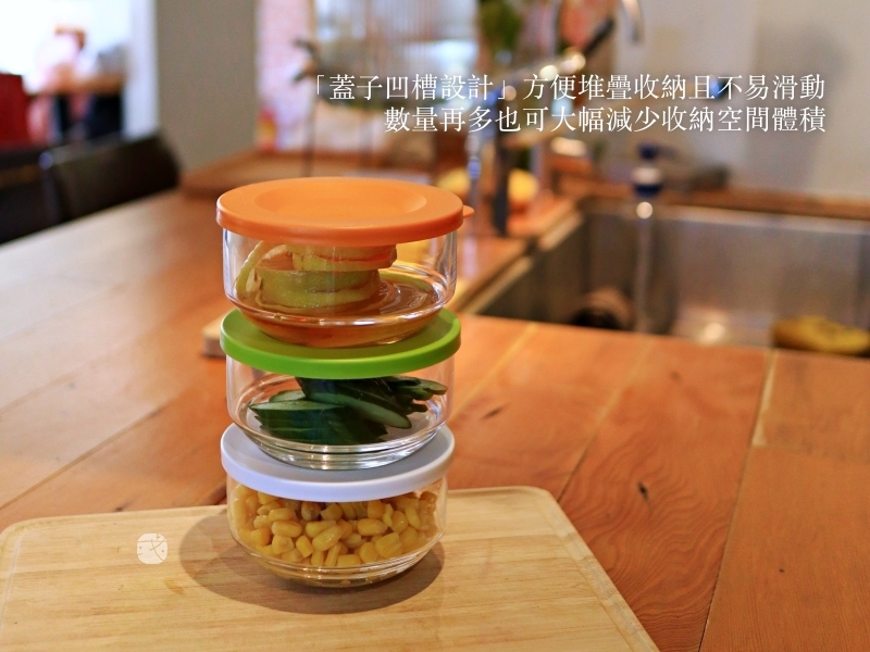 圓形碗體、平整底部輕巧好取放,蓋子凹槽設計,可整齊堆疊收納。醬菜、烹飪食材、剩餘餐時皆可存放。