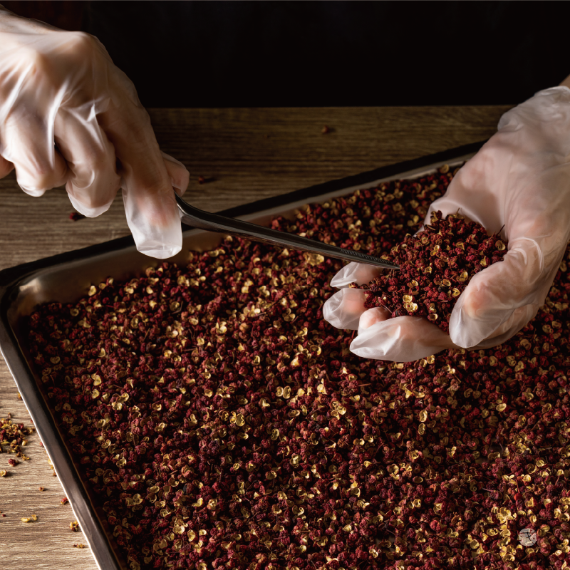 擁有獨特迷人的木質調氣息與柚子辛香。果實皮厚實、小油苞多,色澤飽和且帶有油質感,顆粒大而均勻、香氣濃郁,只需少量添加,即可增添食物的香麻口感。