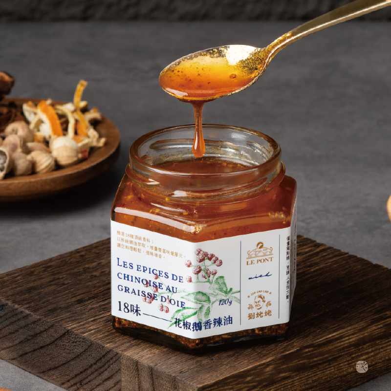 樂朋以自家提煉法式風味鵝油,融入劉姥姥花椒油採古法工序精淬而出的花椒精華。