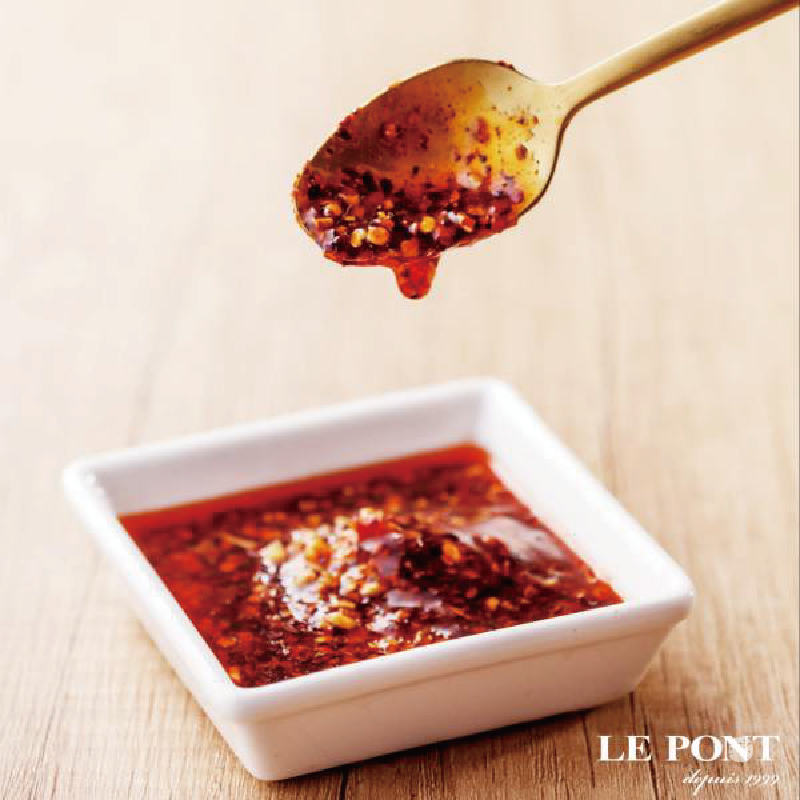 品味層次蔓延的暖暖辣香,佐以咀嚼金沙蒜粒香酥口感,是款兼具辛香辣味及滿足口感的萬能醬料。