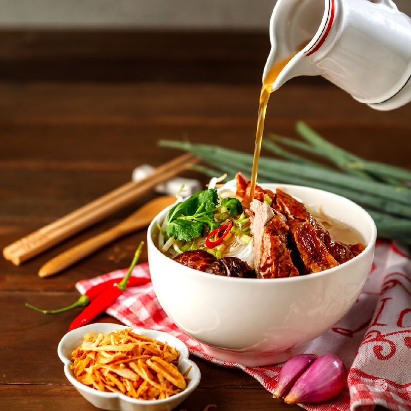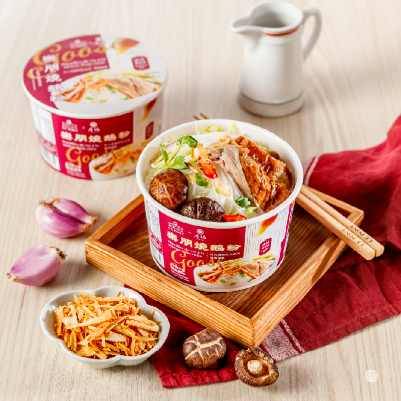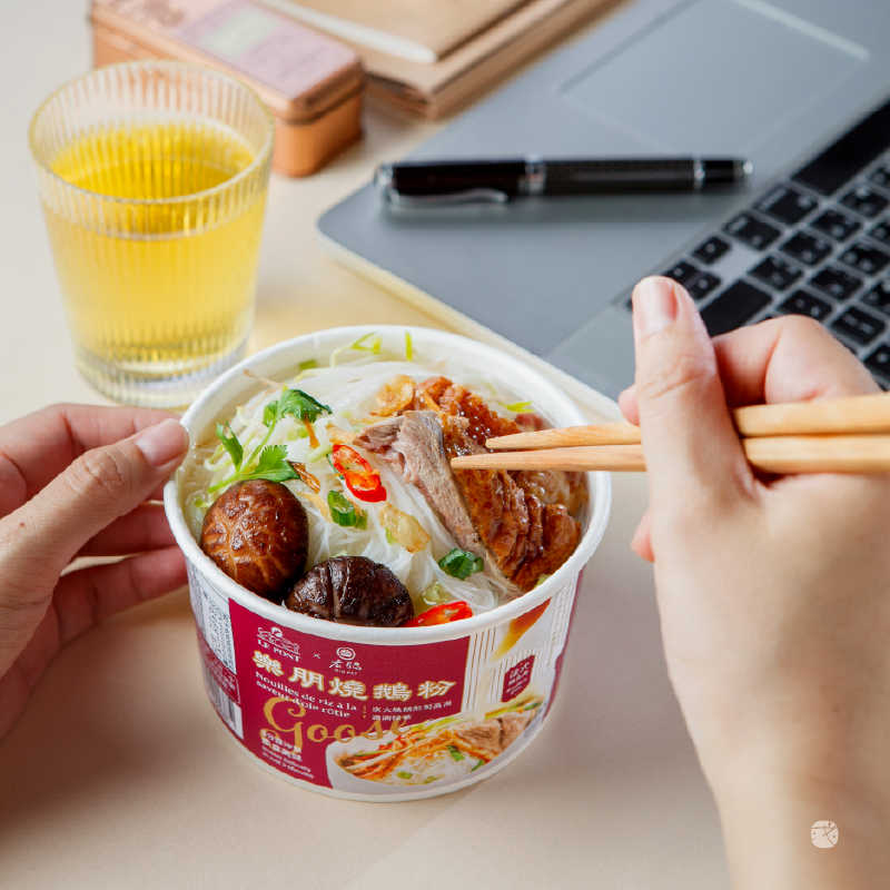 樂朋 X 老鍋米粉聯手推出新品【樂朋燒鵝粉】,炭火燒鵝熬湯、佐法式鵝油與煙燻香氣,方便也能很講究!