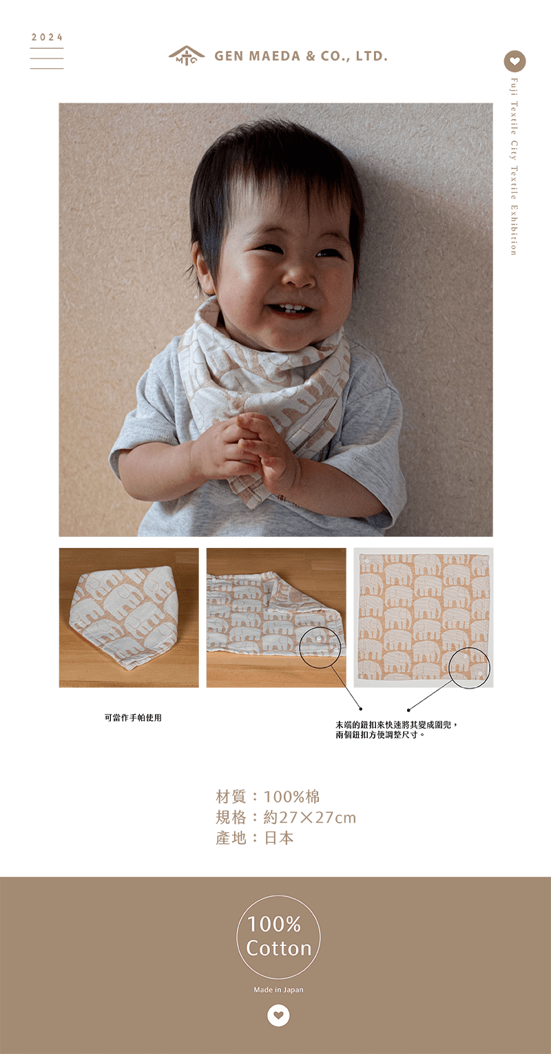 可當作手帕使用,吃飯時也可以通過在末端的鈕扣來快速將其變成圍兜,兩個鈕扣方便調整尺寸。