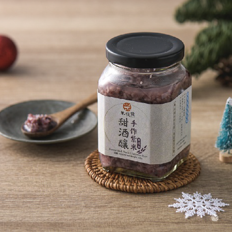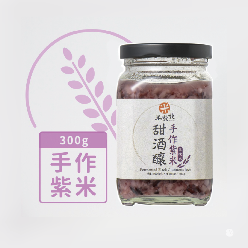 以紫米製作的甜酒釀,富含鐵質與花青素,無防腐劑/人工香料/額外加糖等調味。