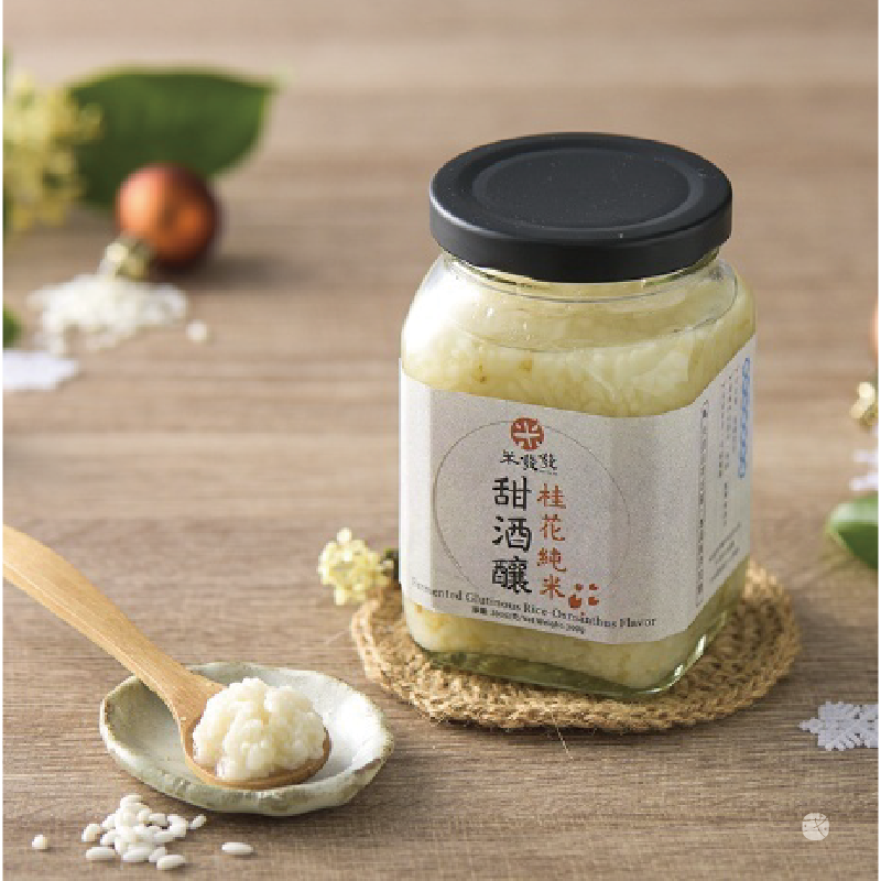 手挑桂花漬入圓糯米酒釀中,暖暖甜甜的桂花清香,打開即可食用!