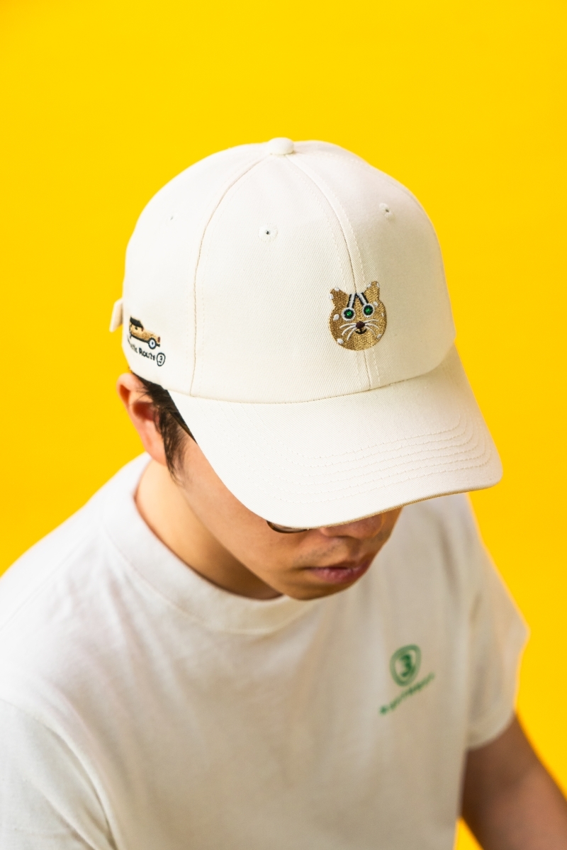 ● 選用適合夏天的米白色,刺上最Q的吉祥物石虎及公路旅行車,戴著它們一起前往台三線冒險,給予陪伴及好心情。