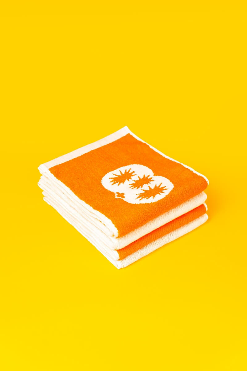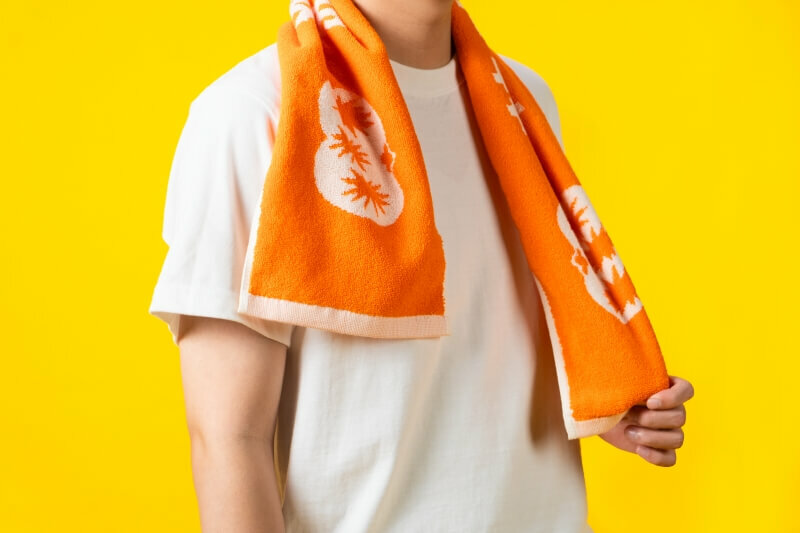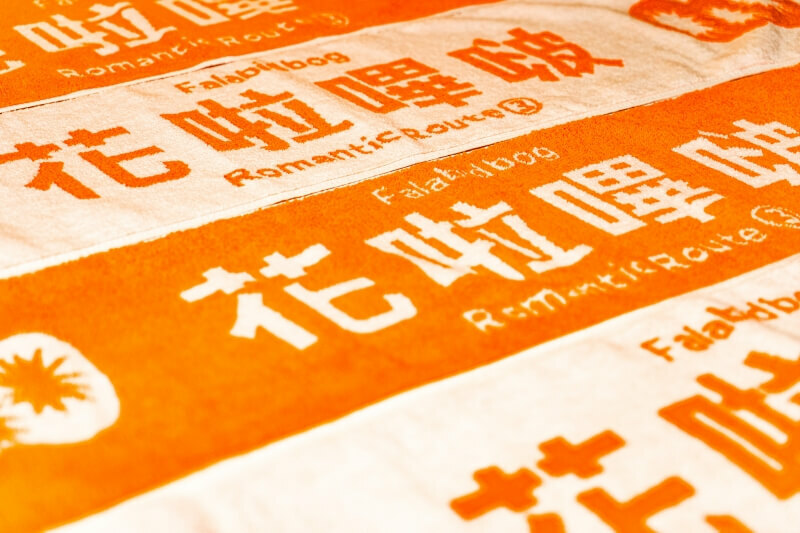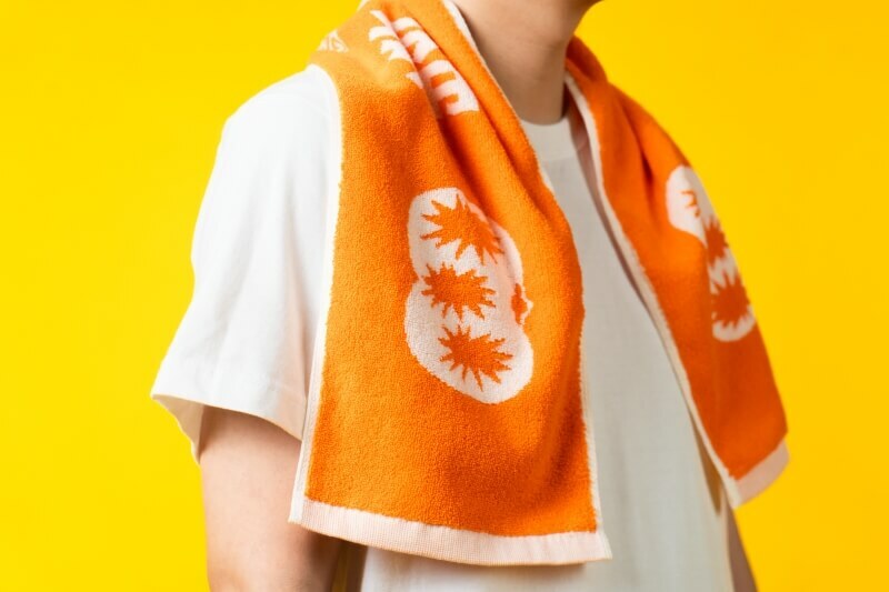 ● 披著「花啦嗶啵」主題緹花毛巾,能遮陽、擦汗、擋雨,亮出橘、白雙色的柿子,就是最潮的藝術季拍照道具!