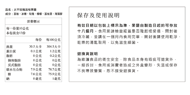 ●成分:荔枝、冰糖、玫瑰、檸檬、荔枝酒、海藻膠