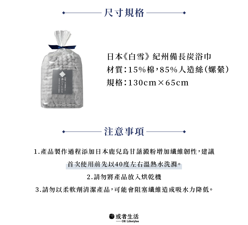 1.產品製作過程添加日本鹿兒島甘藷澱粉增加纖維韌性,建議首次使用前先以40度左右溫熱水洗滌。