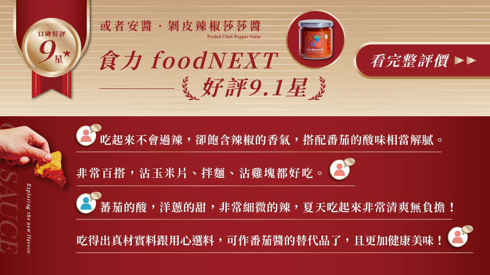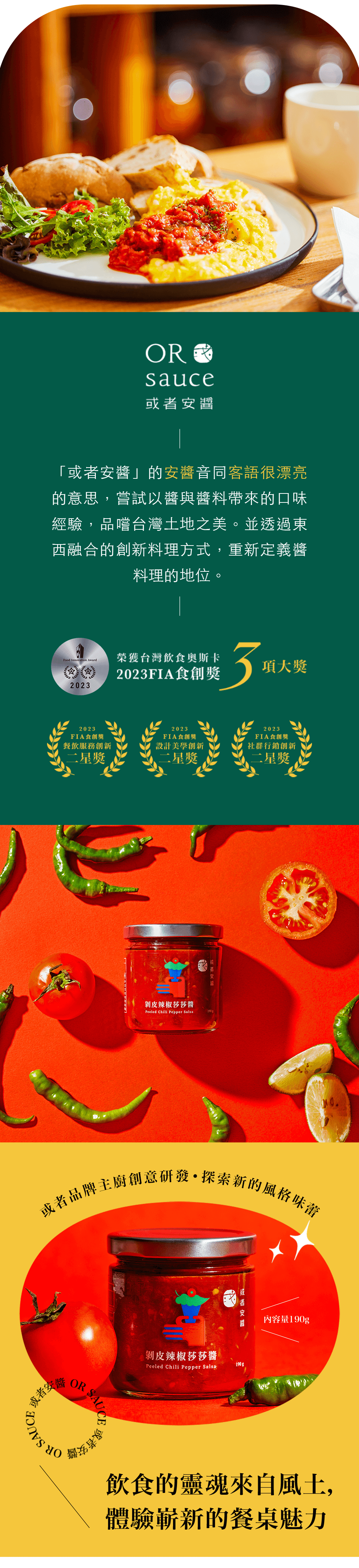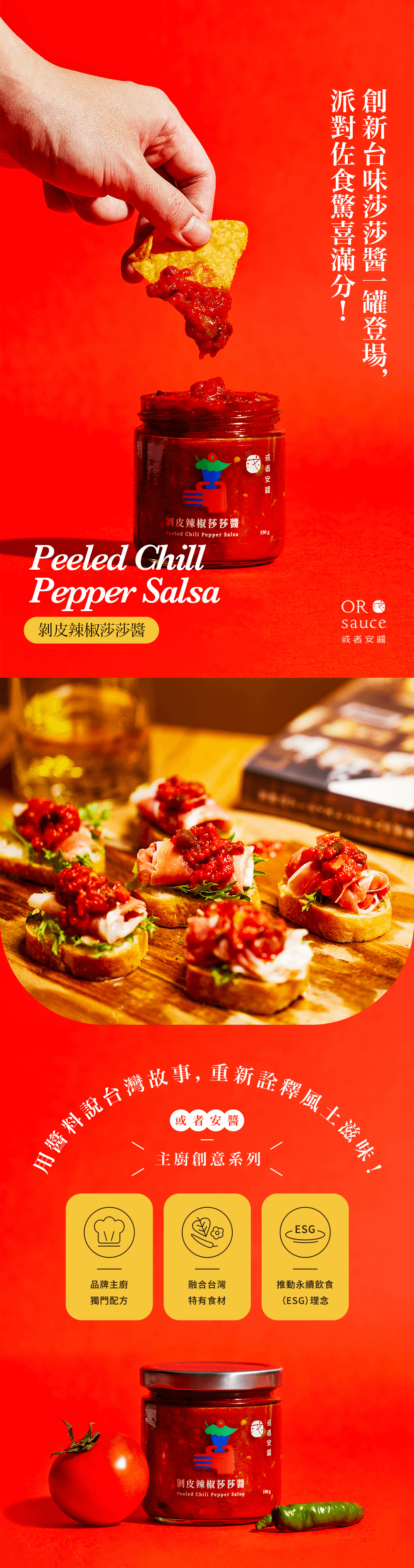 或者品牌主廚創意研發,將西方莎莎醬中的性格辣感與新鮮脆感,以剝皮辣椒取代,獨特的鮮味提供更富饒的味覺感受!