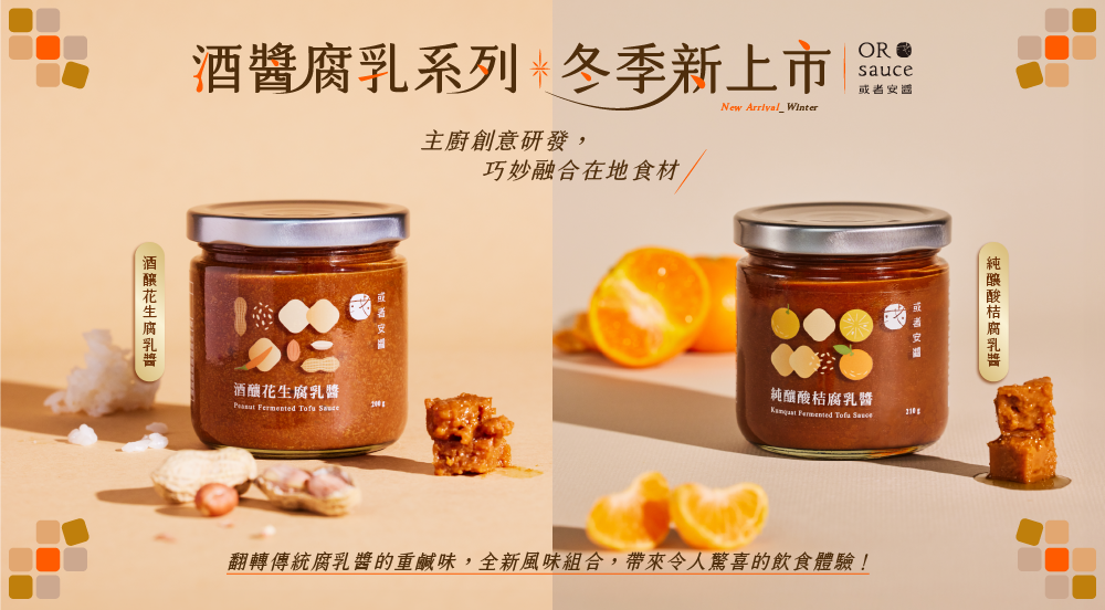 或者品牌主廚創意研發,選用新竹農民契種酸桔所製作的桔醬,為腐乳醬帶來清新酸感,再搭配酒釀甜香,創新呈現腐乳的多重滋味!開罐即可食用,輕鬆地沾醬或佐餐應用,不論在社交聚會、派對或個人享用,都能創造充滿趣味的美食體驗。