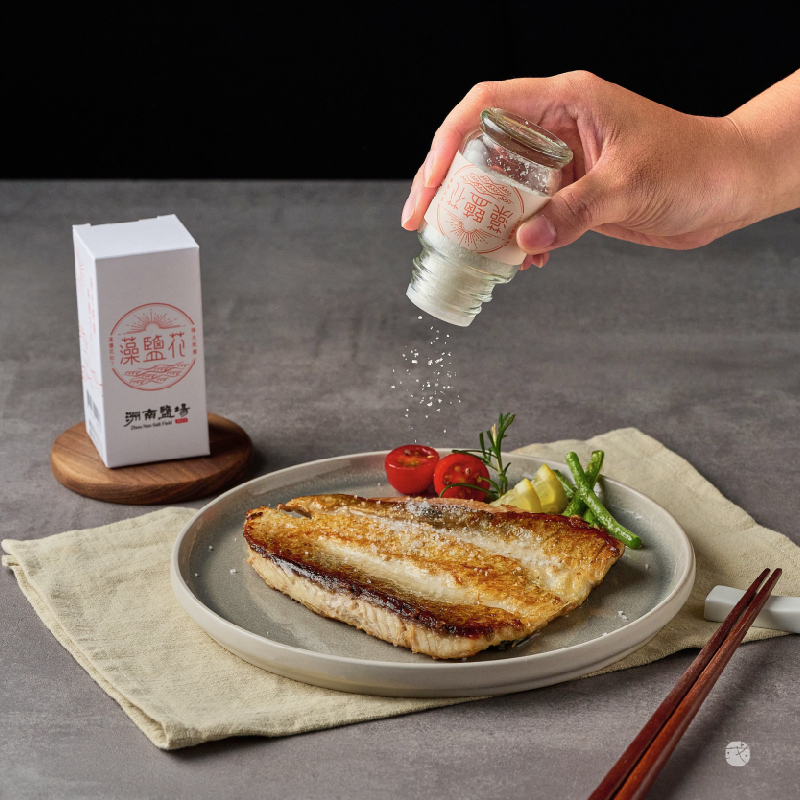 杜莎藻代謝出濃郁的胺基酸、醣類等風味物質,並與鹽花結晶在一起;尾韻細柔、鮮味與醇味明顯。輕撒提味,提升風味上的層次,鹽花與食材在口中咀嚼交匯的滋味,帶出風味與美味!