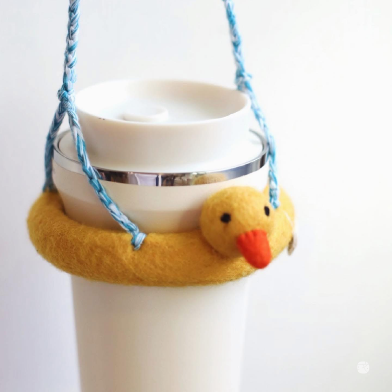 羊毛氈總是給人很溫暖的感覺,我們希望突破這樣的刻板印象~裝上小鴨泳圈的杯套,消暑的殼愛!