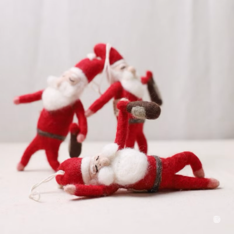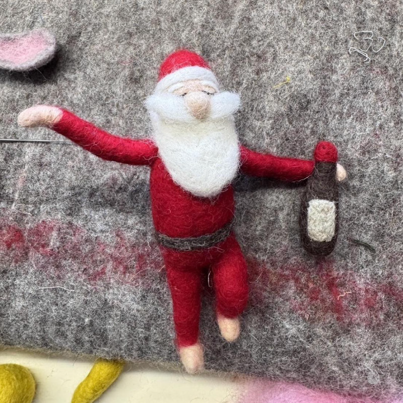🎅 醉(最)靈活的聖誕老人來啦!手拿紅酒、內藏鐵絲,可彎可躺可倒立,不管是裝飾聖誕樹、掛辦公桌,還是陪你放空,他都是節日裡最鬆的羊毛氈小夥伴。