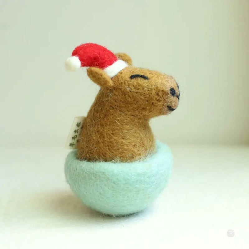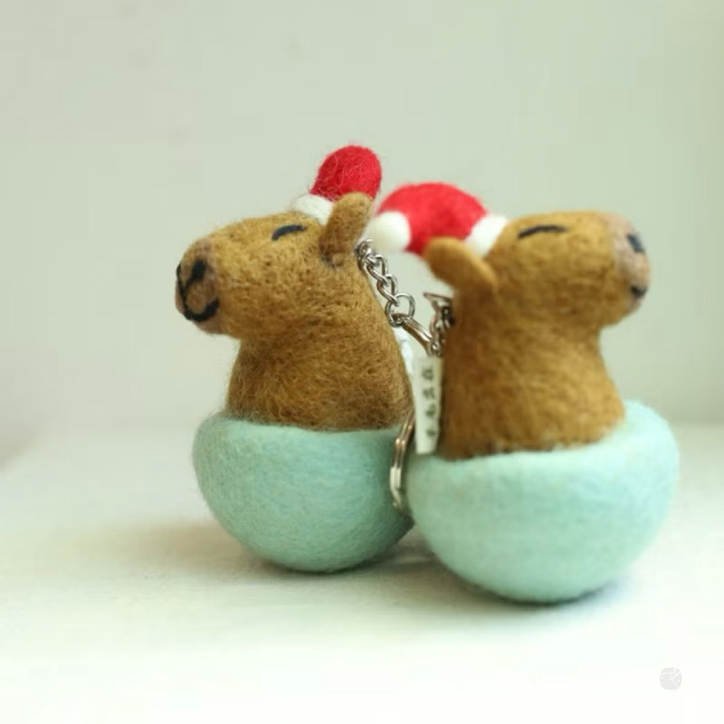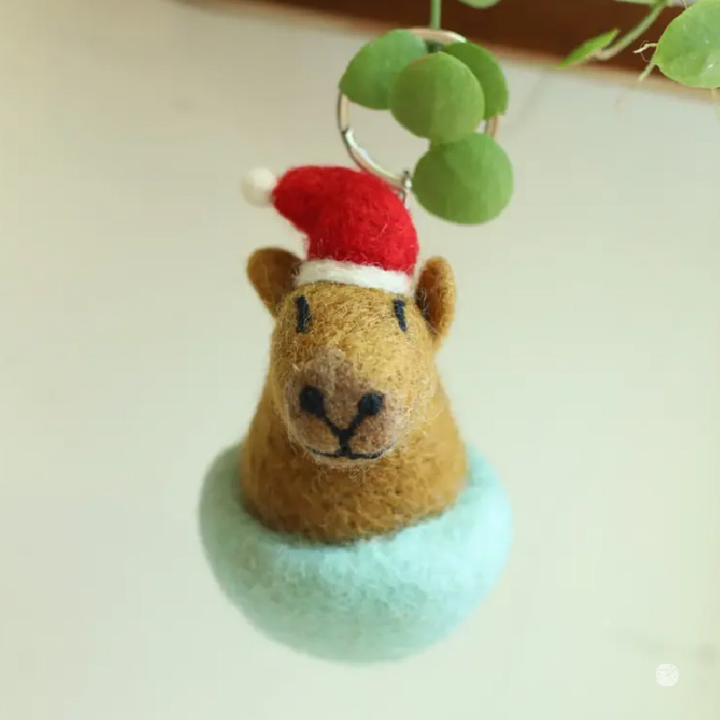 超人氣水豚君鑰匙圈換上聖誕帽,增添節日氛圍!手工羊毛氈製作,柔軟療癒,陪你守護鑰匙。