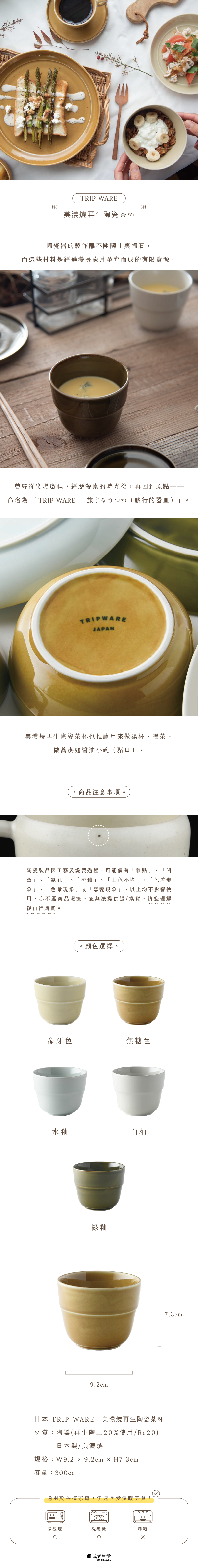 美濃燒再生陶瓷茶杯也推薦用來做湯杯、喝茶、做蕎麥麵醬油小碗(豬口)。