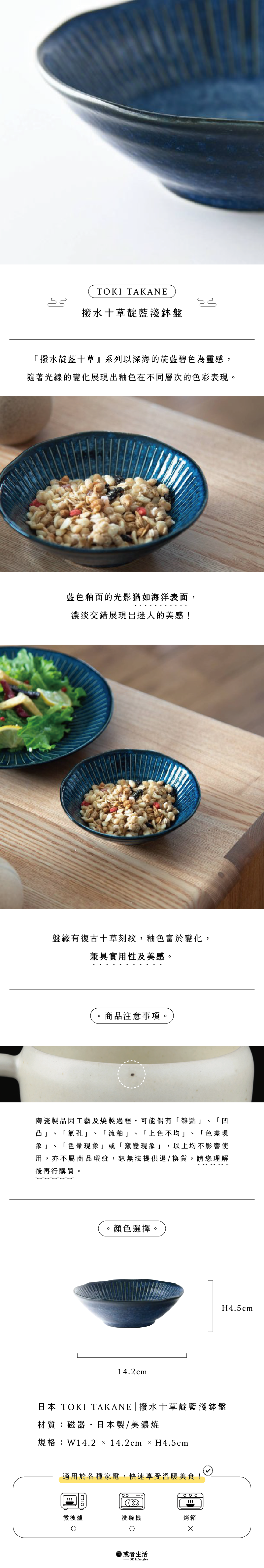 陶瓷製品因工藝及燒製過程,可能偶有「雜點」、「凹凸」、「氣孔」、「流釉」、「上色不均」、「色差現象」、「色暈現象」或「窯變現象」,以上均不影響使用,亦不屬商品瑕疵,恕無法提供退/換貨,請您理解後再行購買。